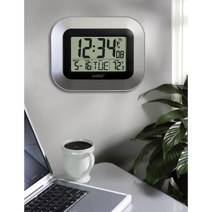 LaCrosse Technology WT-8005U-S Atomic Digital Wall Clock with Indoor Temperature and Date