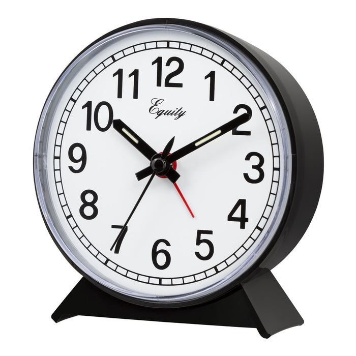 The dial features black numbers on a white face, as well as luminous hands. It also comes with a functional snooze bar for extra sleep time. Ideal for both home and business use, this alarm clock makes a great choice to keep you on schedule.