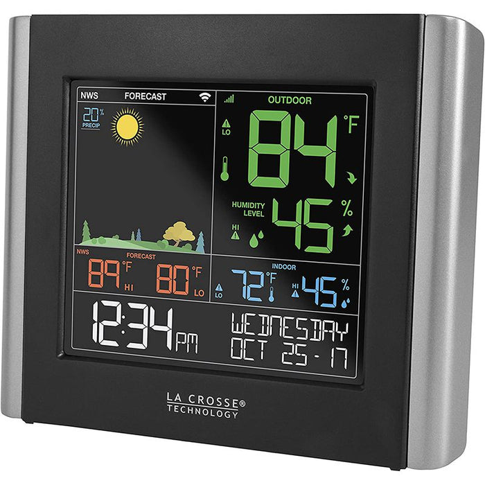 Our new Remote Monitoring Color Weather Station features precise indoor and outdoor temperature and humidity readings, dynamic forecast icons, and a new Wi-Fi connected option, which will allow you to see all of your sensor data in our new La Crosse View app.